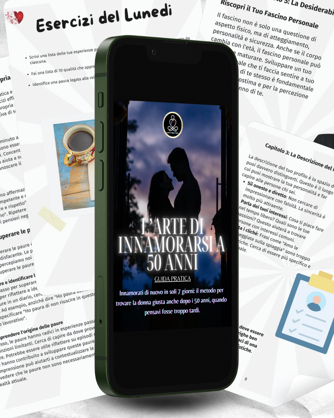 "Non avrei mai immaginato che una guida potesse fare una tale differenza nella mia vita! Dopo i 50 anni, avevo ormai rinunciato all’idea di trovare l’amore, convinto che fosse troppo tardi per me. Ma questa guida mi ha dimostrato quanto mi sbagliassi! In soli sette giorni, ho ritrovato una fiducia in me stesso che pensavo di aver perso e, cosa ancora più importante, ho imparato tecniche pratiche per aprirmi agli altri senza paura.